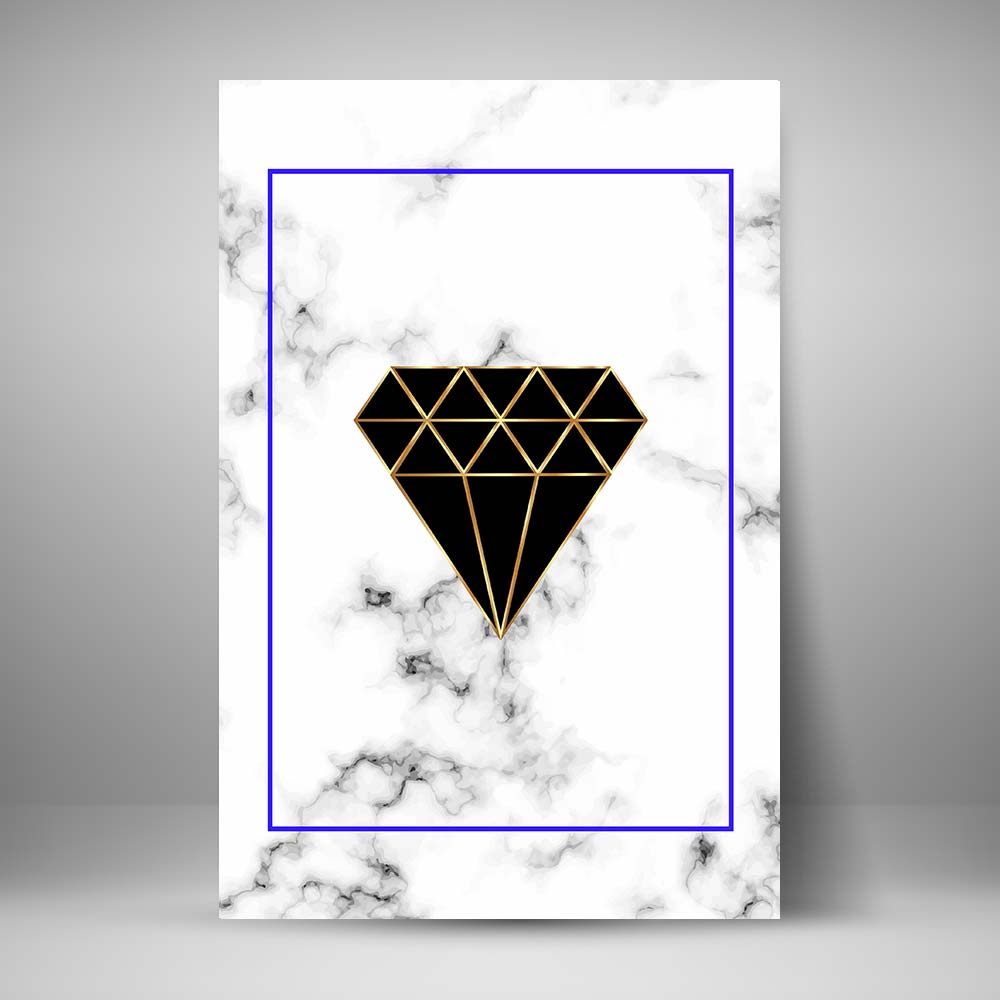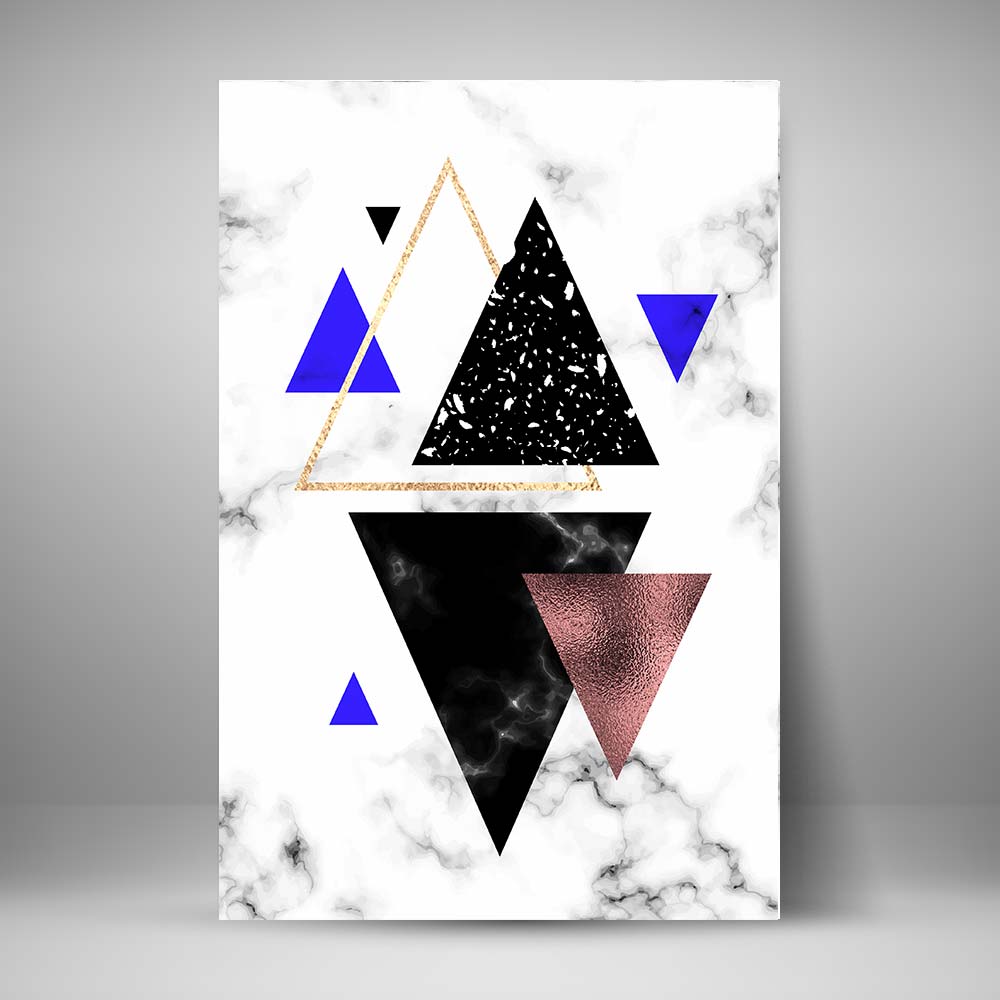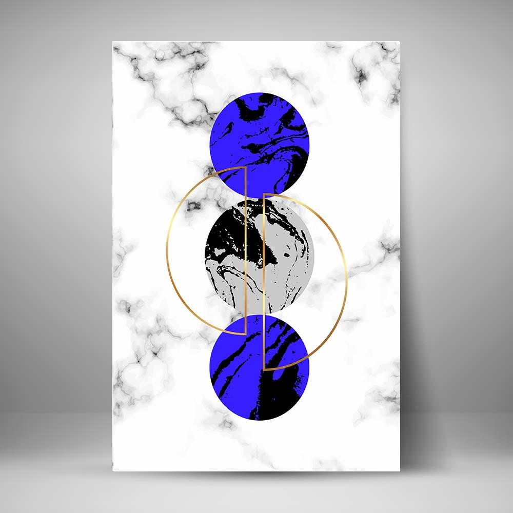 Juego de seis cuadros abstractos sobre Artes Geométricas tipo mármol en tonos blanco, negro y azul.