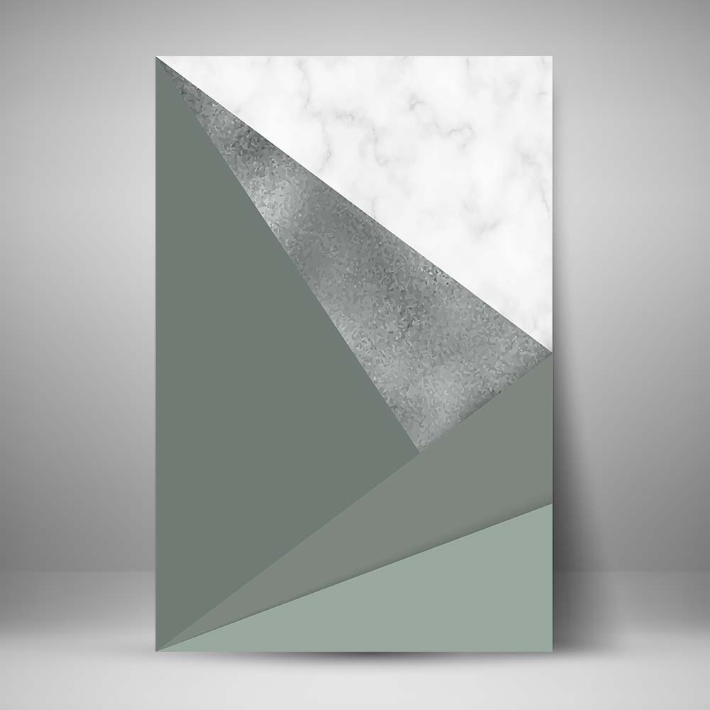Juego de tres cuadros abstractos sobre Artes Geométricas tipo mármol en tonos blanco y gris.
