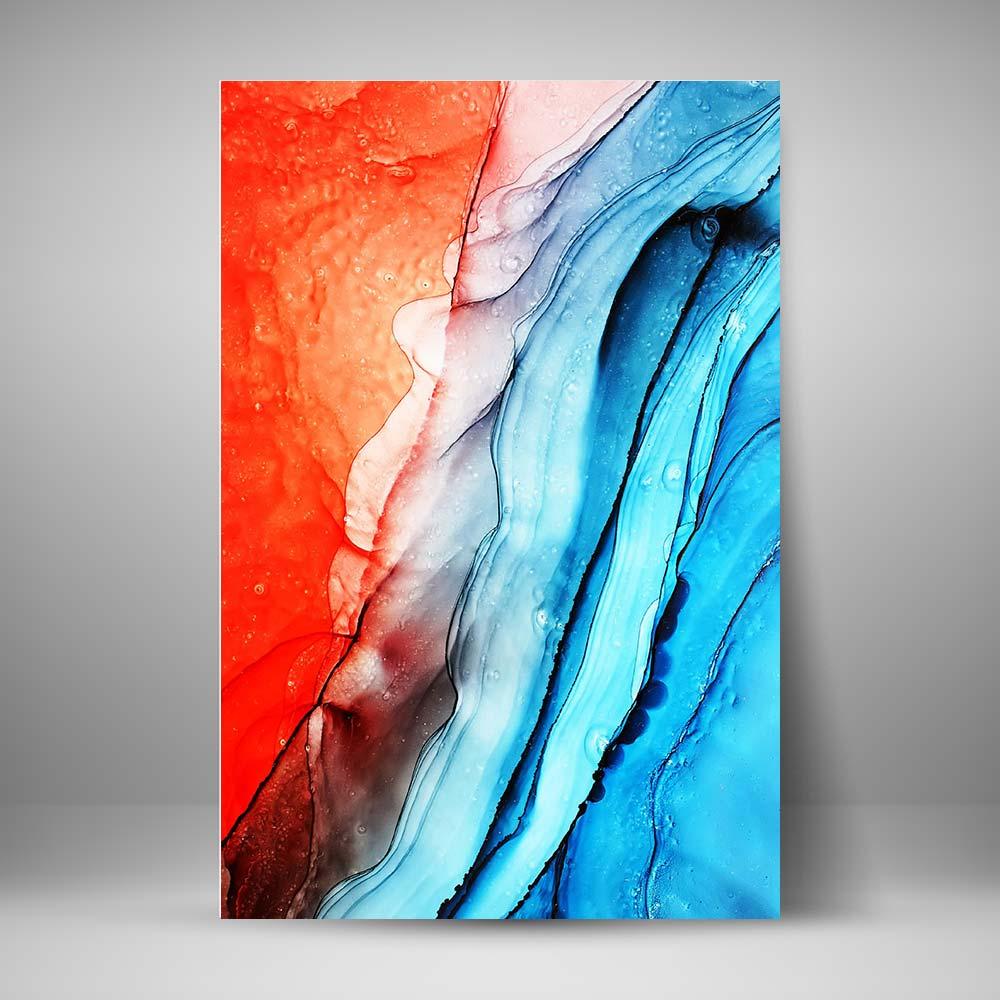Pintura abstracta creada con técnicas de tintas al alcohol en tonos Rojo y Azul.